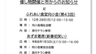 回覧板 年末防火防犯パトロールのご案内、焼き絵ワークショップ、催しもののお知らせほか
