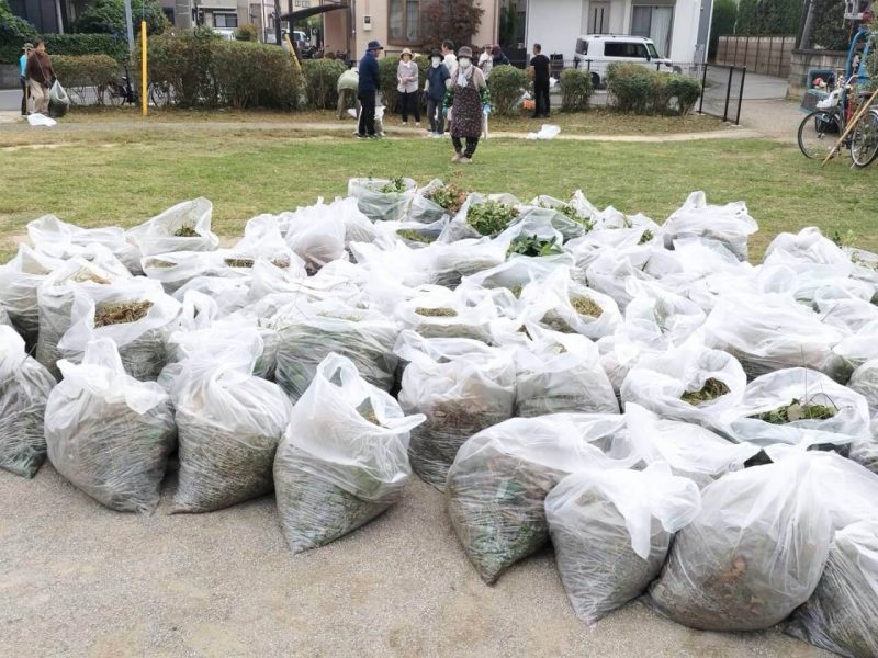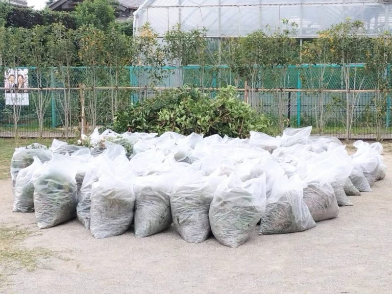秋とは言え、まだまだ草はたくさんありました。全部で50袋ほどを刈ることができました。