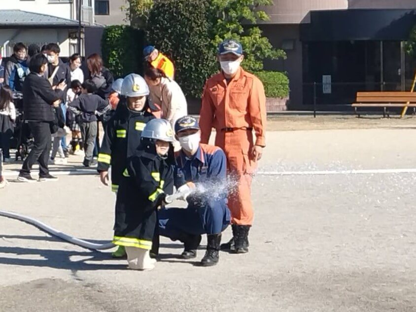 その後、子ども達向けに、放水訓練と消防服を着ての写真撮影会も行いました。