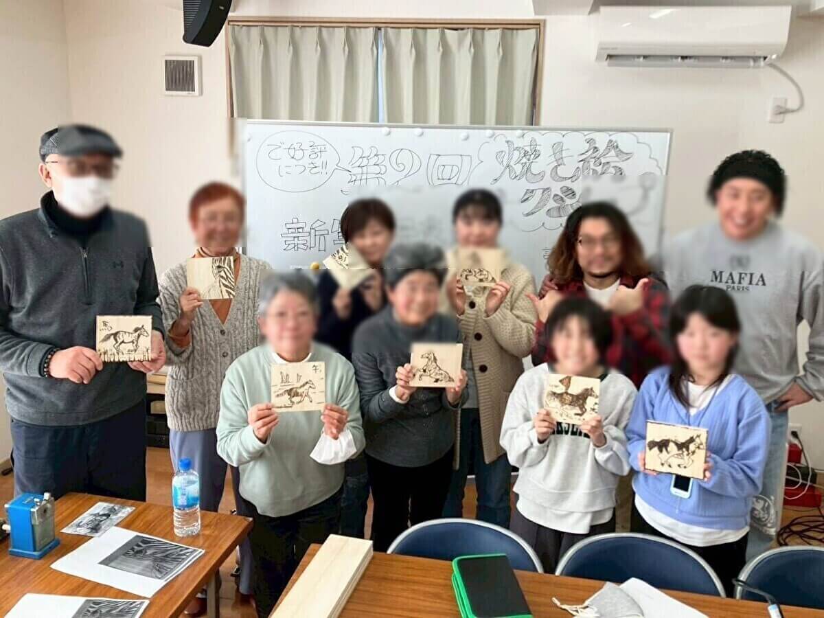 最後に記念撮影です。皆さん、素敵な焼き絵が完成しました。とても楽しい時間となりました。
