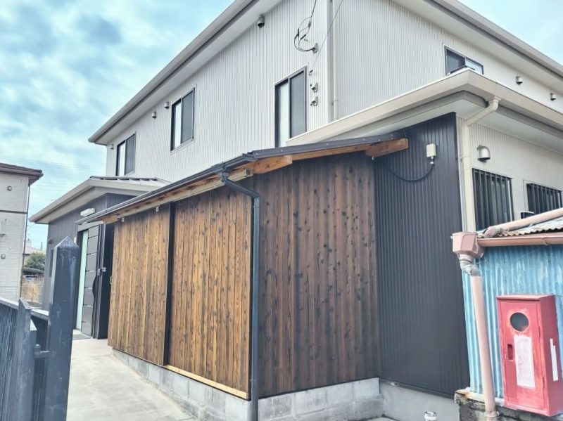 外側は焼杉板を張ってあるそうです。もちろん基礎もしっかりとしています。