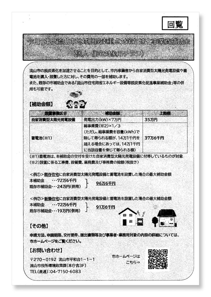 ■ 令和7年度 流山市地域脱炭素重点対策加速化事業費補助金