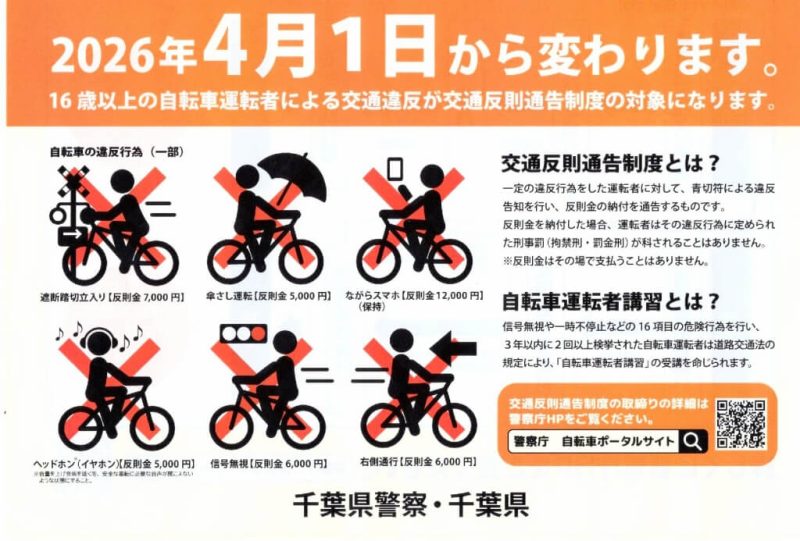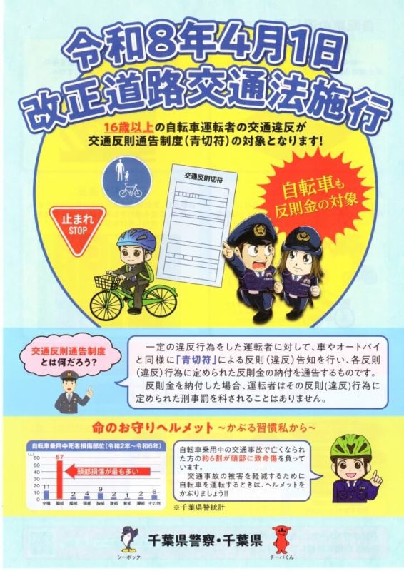 催しもののお知らせ、千葉県警察・千葉県から改正道路交通法のお知らせ