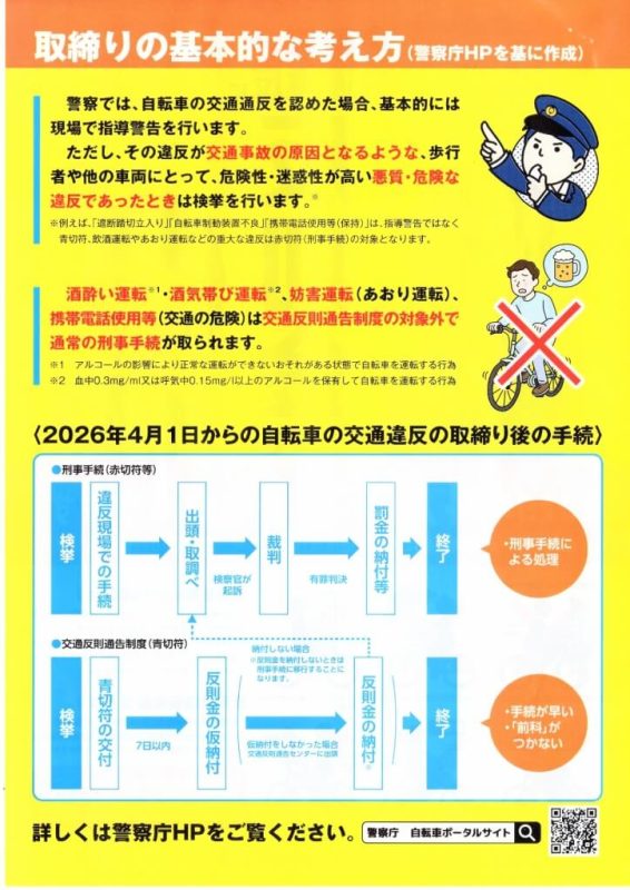 来たる4月1日から施行される改正道路交通法では、自転車に関する規制が厳しくなります。しっかり読んで内容を理解し、安全運転するようにしましょう。